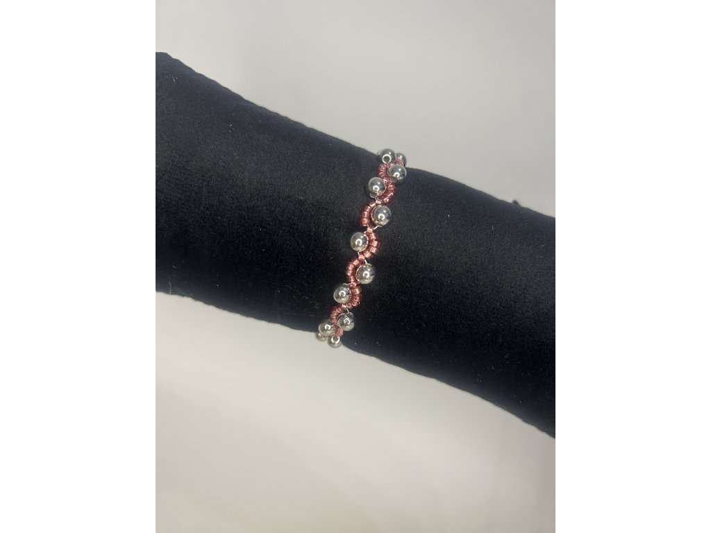Náramek, který spojuje hloubku tmavě růžové s kovovým leskem. Vyzařuje sílu, eleganci a sebevědomí, přitom zůstává jemný a sofistikovaný. Perfektní pro chvíle, kdy chcete vyniknout a dodat outfitu výrazný, přesto harmonický detail. Díky prodlužovacímu řetízku se krásně přizpůsobí.