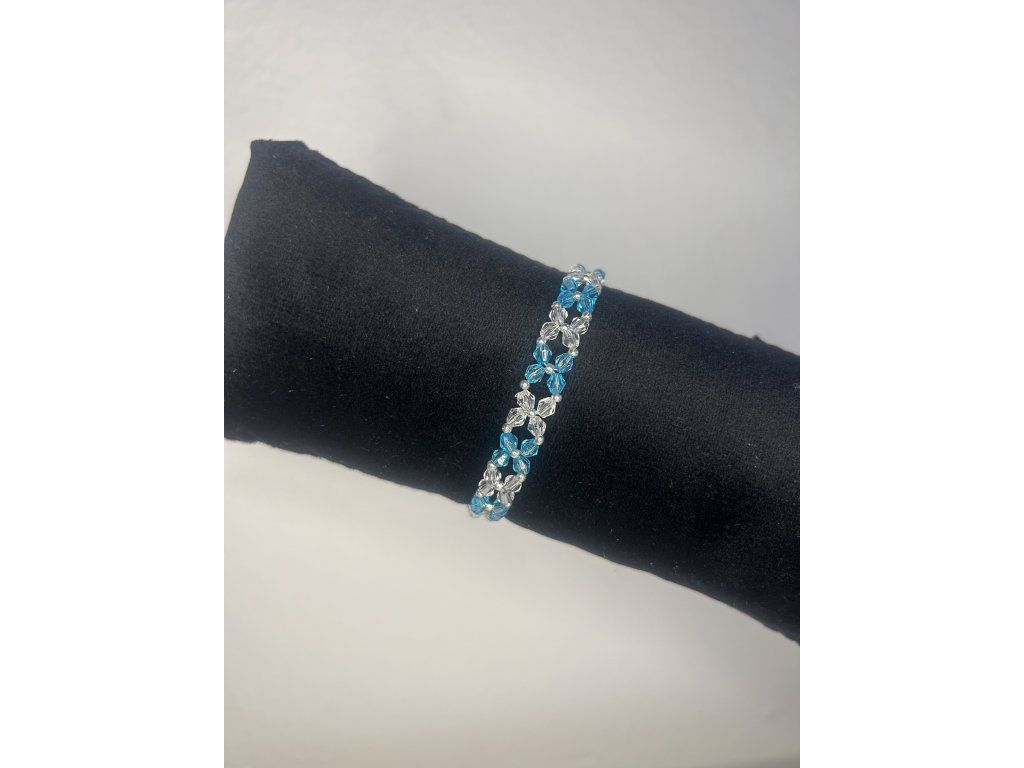 Náramek První světlo zachycuje okamžik, kdy se noc mění v den. Tyrkysové a čiré korálky připomínají kapky rosy a první sluneční paprsky, které se dotýkají květů. Lehký a svěží doplněk pro jemnou eleganci.