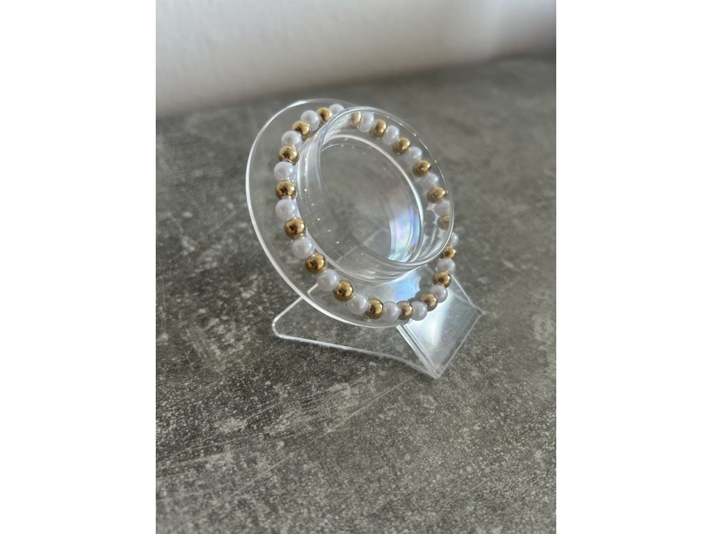 Náramek z perliček a zlatých korálků, který přináší jemný třpyt a sofistikovanou eleganci. Ideální pro každodenní nošení i speciální příležitosti, kdy chcete podtrhnout svůj styl s lehkostí a harmonií.