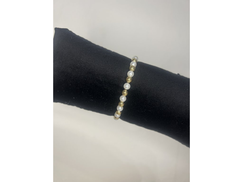 Elegantní náramek z perliček a zlatých korálků pro jemný třpyt a harmonii.
