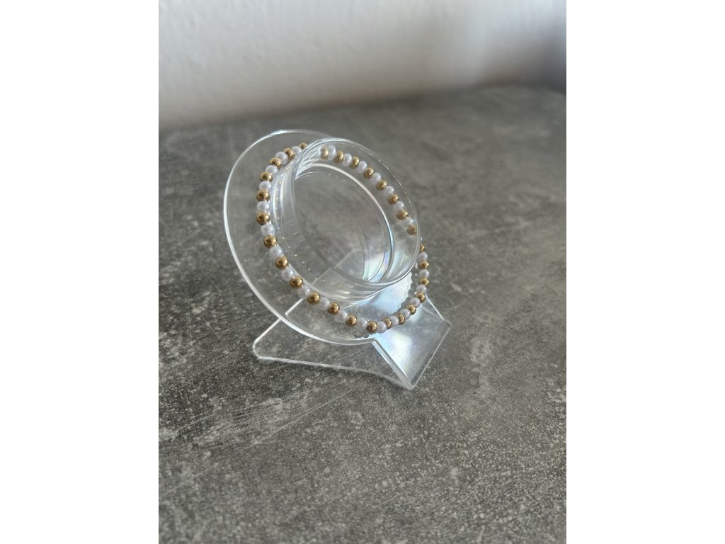 Náramek z perliček a zlatých korálků, který přináší jemný třpyt a sofistikovanou eleganci. Ideální pro každodenní nošení i speciální příležitosti, kdy chcete podtrhnout svůj styl s lehkostí a harmonií.
