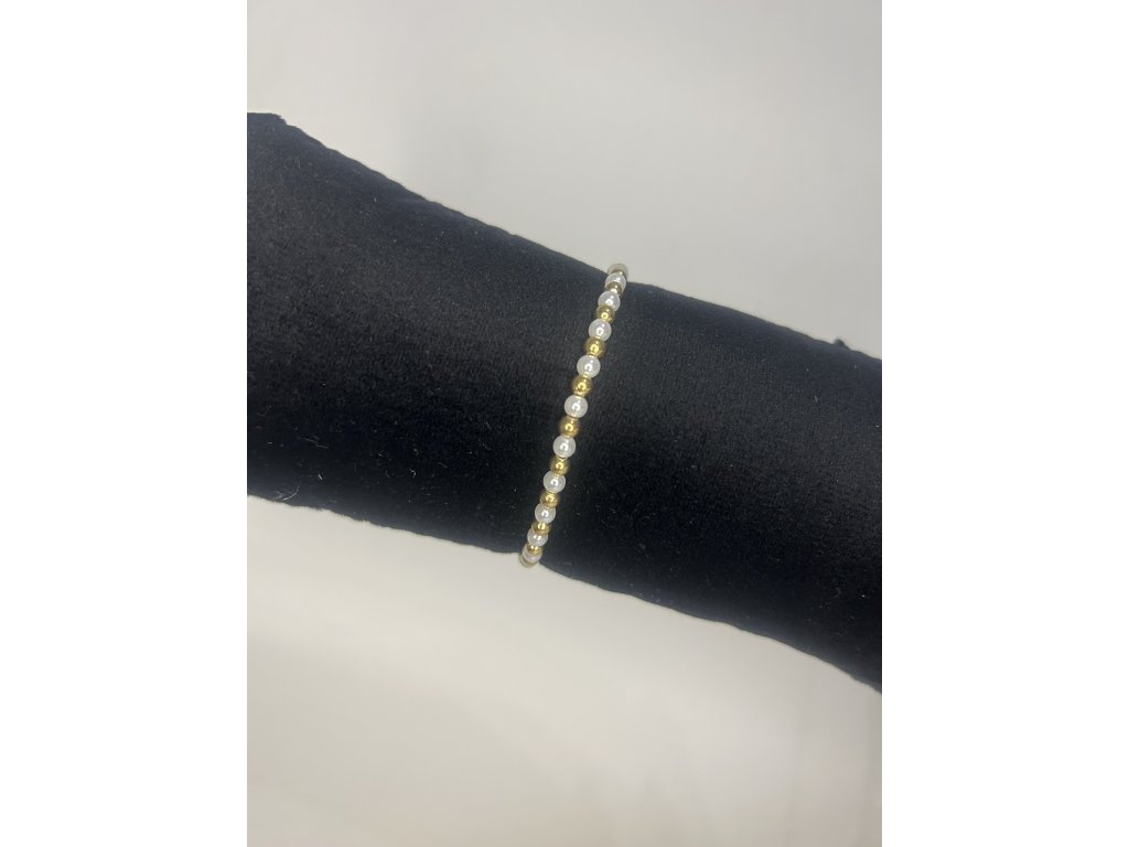 Elegantní náramek z perliček a zlatých korálků pro jemný třpyt a harmonii.